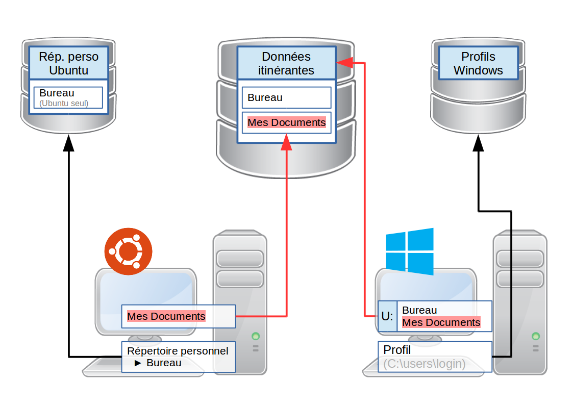 Vos données personnelles, qu’on appelle ici Données itinérantes, sont stockées dans votre lecteur réseau personnel qui est situé sur un serveur de fichiers de l’Université. « Mes Documents » fait partie de vos Données itinérantes.