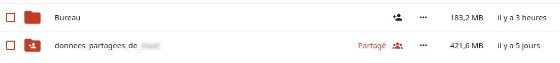 en face du fichier ou du dossier à partager. Si des partages sont déjà effectifs pour ce fichier ou ce dossier, l’icône est remplacé par la mention « Partagé ».